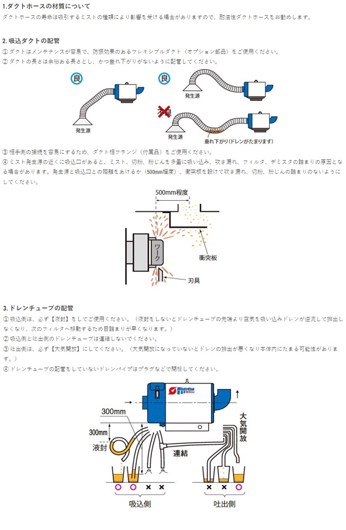 ミストレーサとは、切削加工現場の工作機械から発生するオイルミストを捕集し、快適な作業環境を確保するための装置です。オイルミストがなくなることで作業者の健康への悪影響を防ぐことができるほか、床に付着したミストによる転倒などの二次災害も防止できます。
