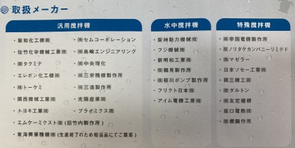撹拌機のメーカー様もたくさんございますので御社の仕事内容に最適な撹拌機の選定が