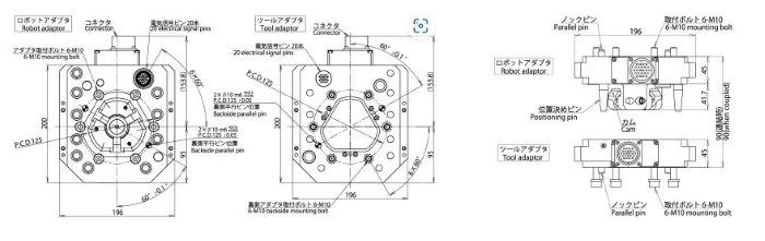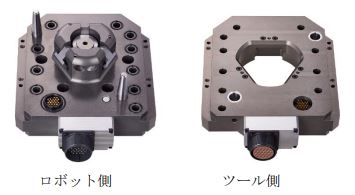 ロボットにツールの交換機能を持たせ、応用柔軟性を大幅に拡大するという明確なコンセプトのもとに開発されました。特にロボット用として、電気・空気・水などの回路の自動着脱機構を内蔵した、画期的な自動工具交換装置です。オートマチックツールチェンジャーを装備すれば、ロボット1台で様々な工具が使いこなせ、大幅な自動化が簡単に実現できます。