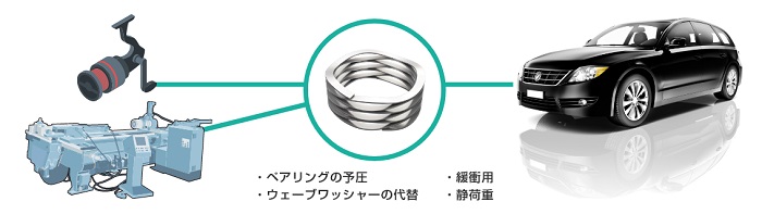 ※皿ばねに比べると荷重が小さいため、単純に置き換えることは出来ませんが、用途によっては面倒な組付けを簡易化することが出来ます。