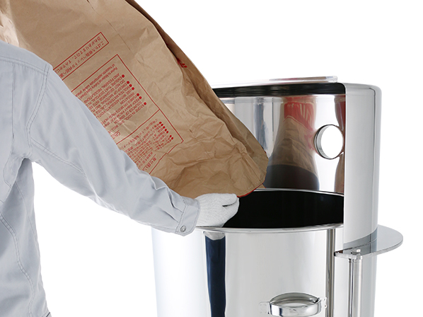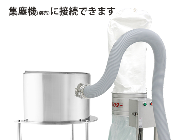 | ○ 集塵機(別売)と接続して、粉体投入時に舞い上がる粉の回収をサポート。 大きなフードで効率よく集塵します。 |