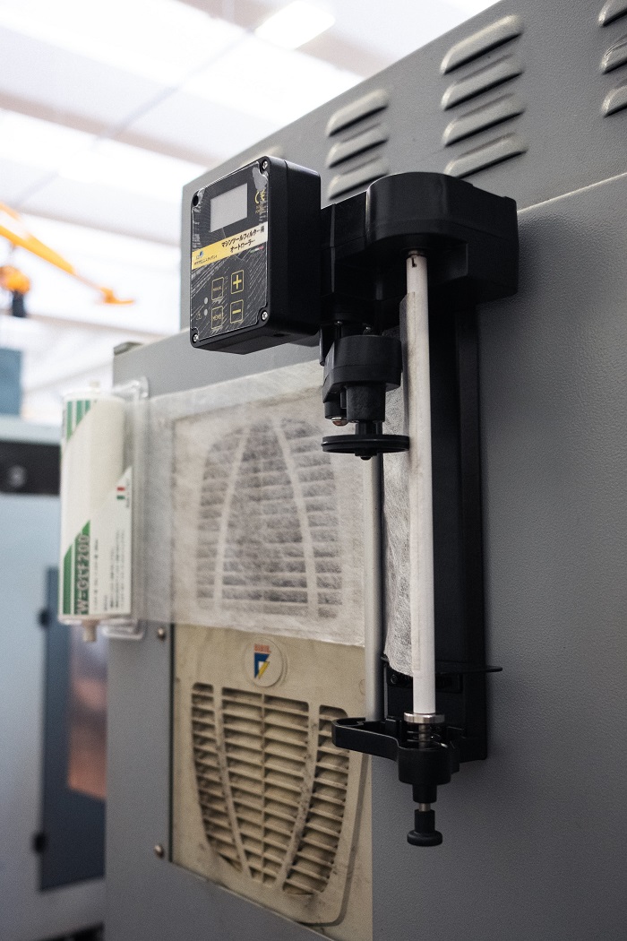 オートローラは自動でフィルター交換を行い、人手不足の工場の自動化に貢献いたします。