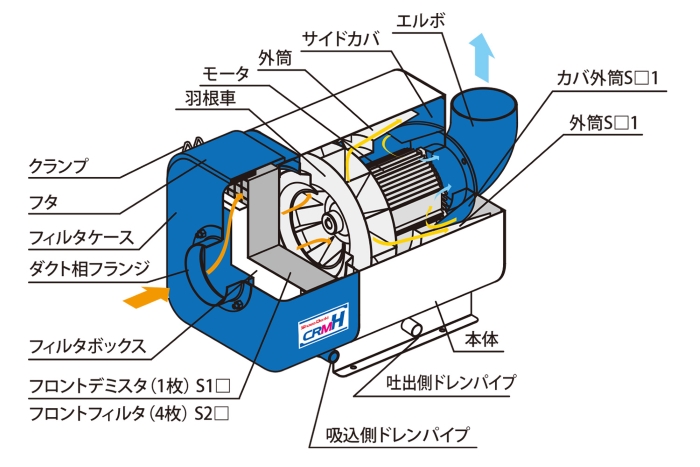 CRMの横型(CRM-Sタイプ)はお客様の使用条件に合わせてフィルタレス・フィルタタイプの組合せを自由に選択することができます。