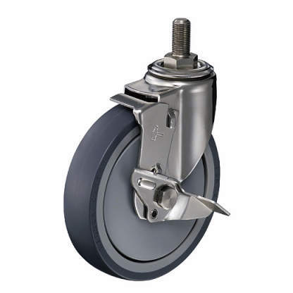 ・耐蝕性・耐水性に優れ、旋回時・走行時に発生する騒音を軽減した「静」機構のねじ込みオールステンレスキャスターです。