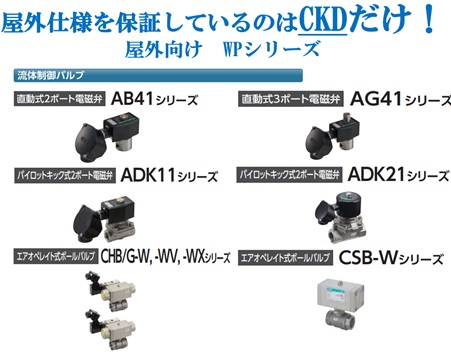 CKD(株)より、屋外向け商品WPシリーズ『流体制御バルブ』の紹介です。