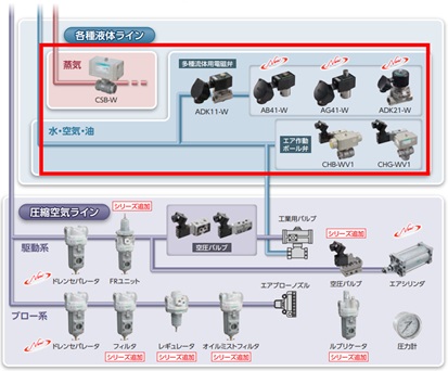 新たに「直動式2・3ポート弁、パイロットキック弁2ポート弁(大口径)」を追加。