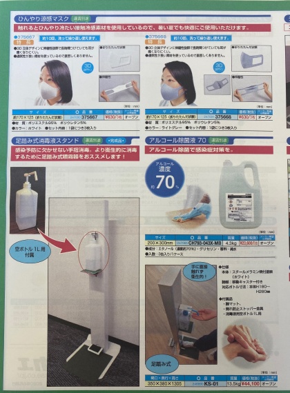パネル スクリーン 涼感マスク 消毒液スタンド アルコール除菌液などです。