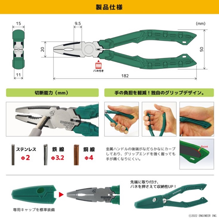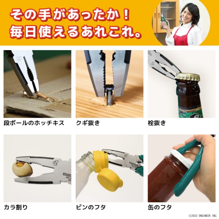 | ○ つかむ、切る、ネジる、抜く、1本4役の多機能ペンチ。 |