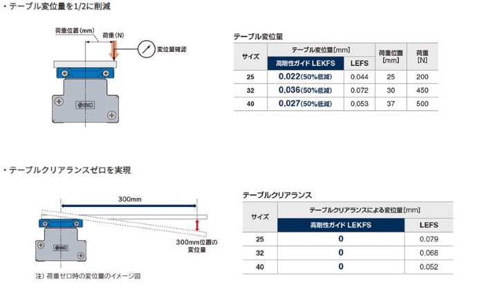 ・テーブル変位量:最大50%低減